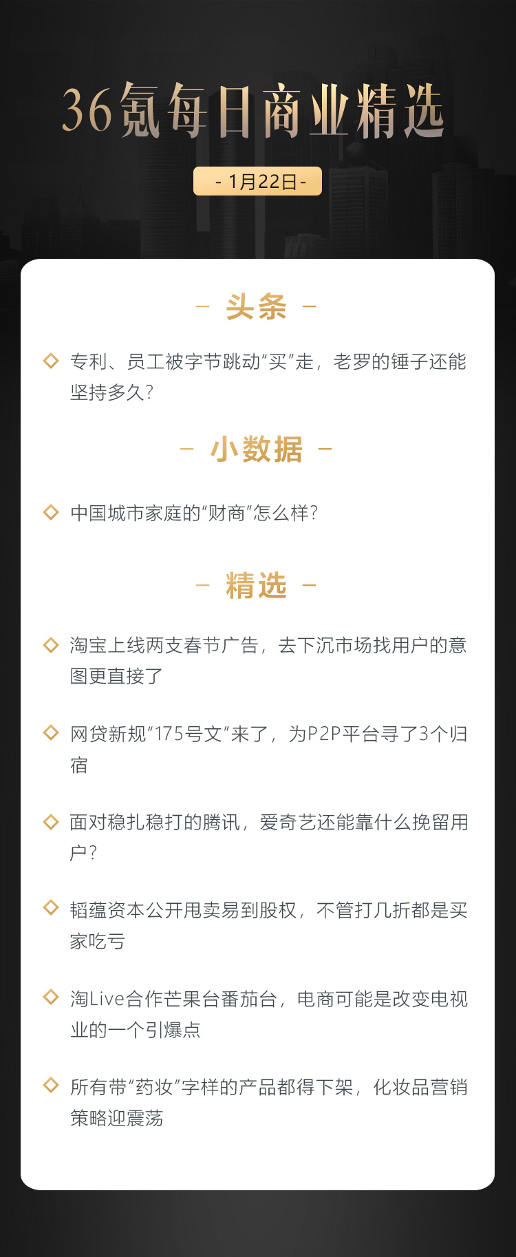本文来自36氪付费栏目《36氪每日商业精选》——1月22日