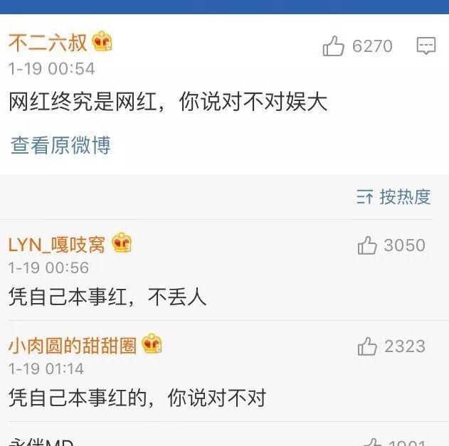 在#刘宇宁踢馆失败#话题下的热门微博评论里,一条网友评论“凭自己本事红,不丢人”获得了3050条点赞。