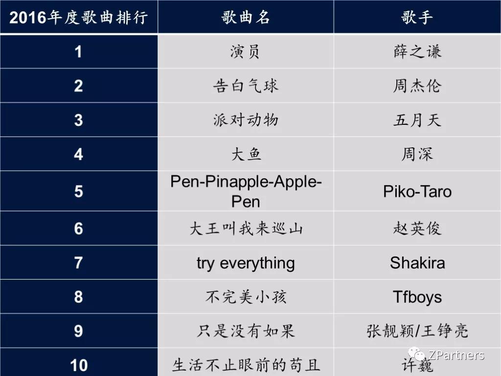 2016年我们看到了神曲PPAP和小鲜肉TFboys的影子。求锤得锤的薛之谦排名第一。周董依然在榜单上。