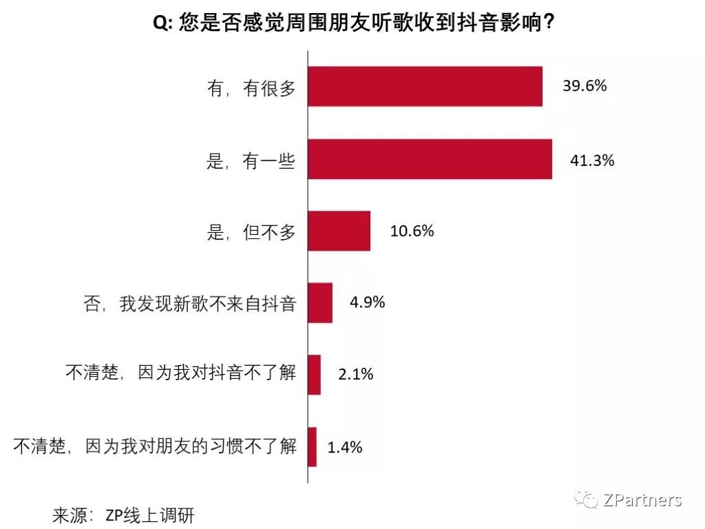 有趣的是,ZP发现接受调研的用户往往不承认自己听音乐受抖音影响,可能是觉着“中国傻子千千万,抖音快手各一半”,自己不能做脑残。但他们又坦言朋友受抖音影响非常大——兄弟这是友尽的节奏啊。