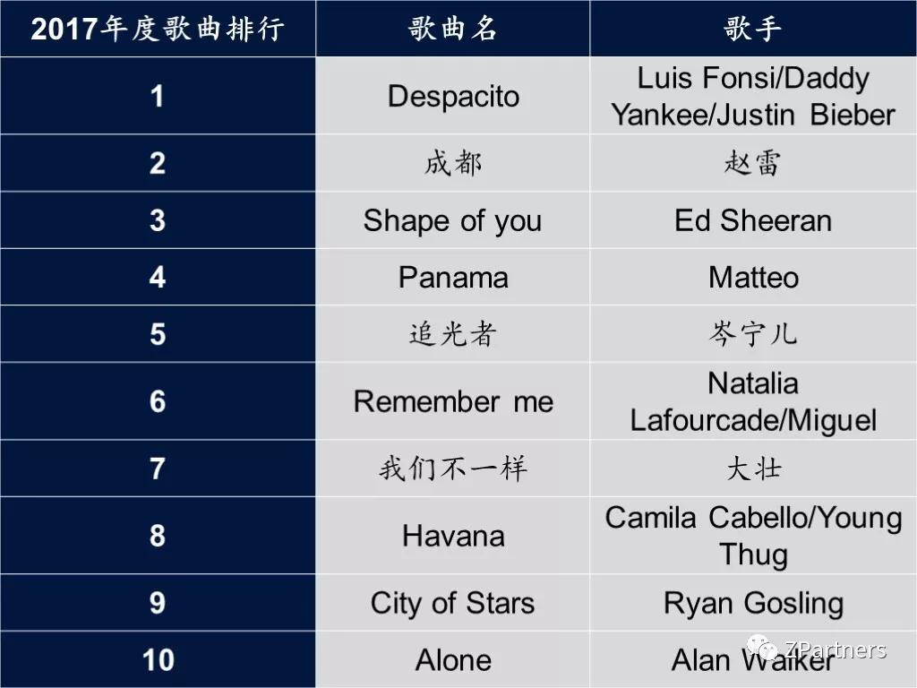 2017年画风清奇,是唯一充满大量英文歌的一年。是不是中国人的英语好到以后会一直听英文歌了?但如果播放一下这些歌曲,我们就会发现旋律那么熟悉。