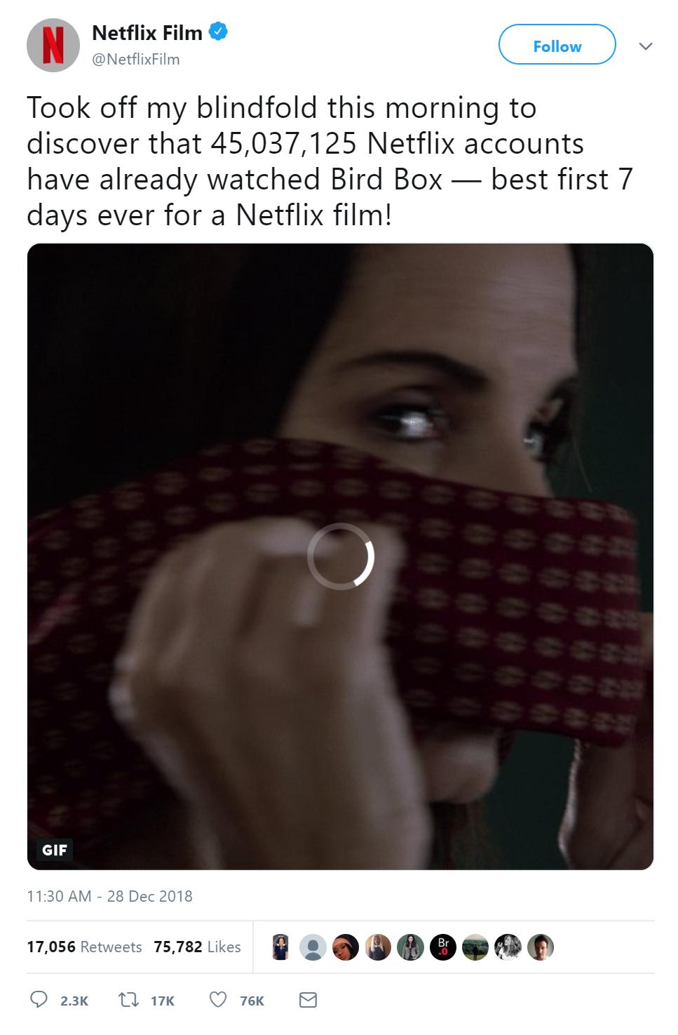 不过,最有意义的《Bird Box》推文还是来自Netflix官方: