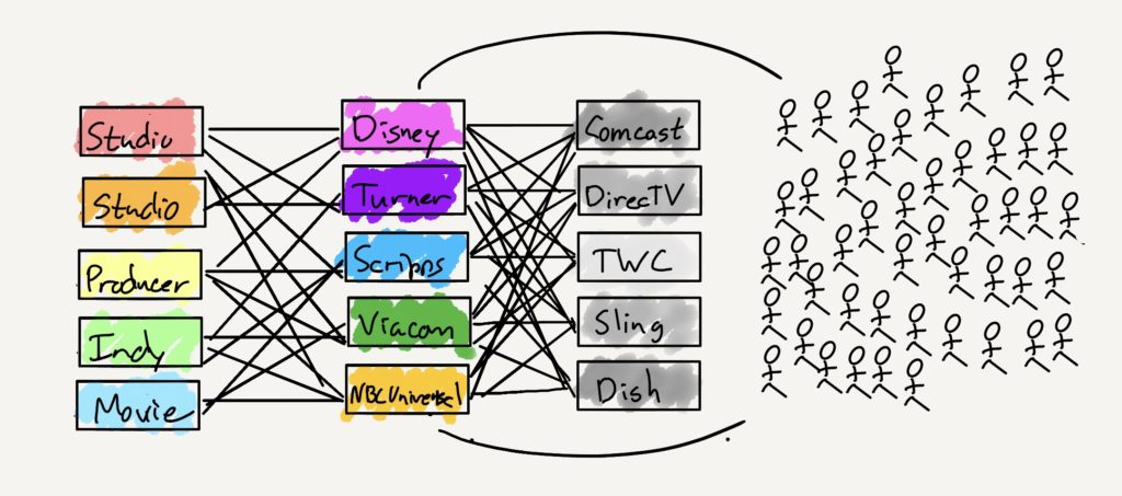 在主要的限制因素是时间和实际需要将电缆连接到终端用户的电视机背面时,这样的价值链设置有道理的,但在一个没有时间限制、通过互联网进行传播的世界里,这是一个很大的障碍。