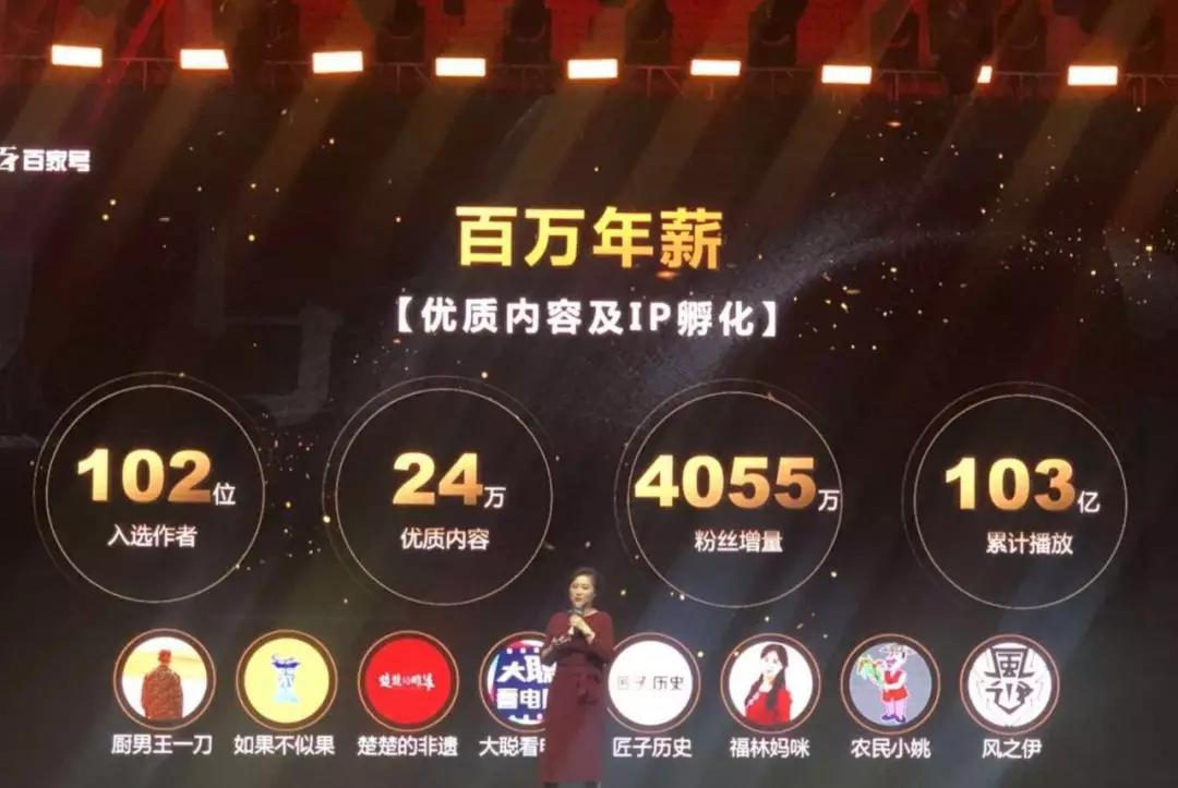这个量其实不小。在方可成一文出现后的次日,百家号正好举办一场论坛。百度官方骄傲地宣布,有102位作者,获得了百万年薪的收入。考虑到这是百家号头部收入者的分成数字,百度总盘子也应该斩获颇丰。