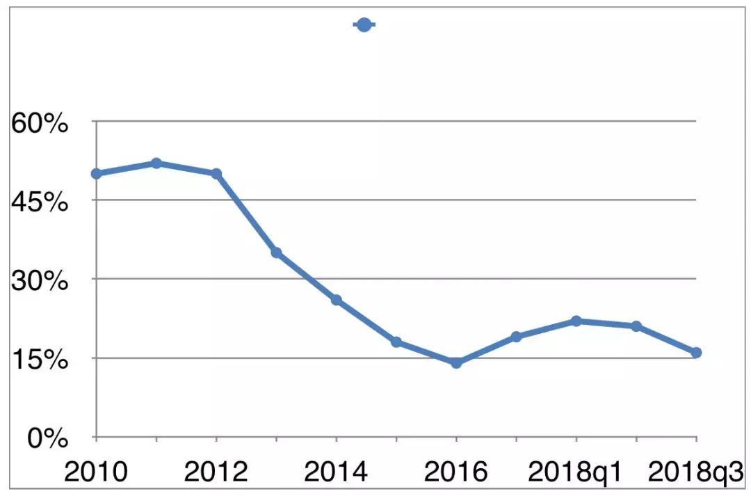 17年,有所回升,达到19%。18年第一季度到第三季度,分别是22%、21%、16%。很显然,百度赚钱的效率,依然没有摆脱最低谷。