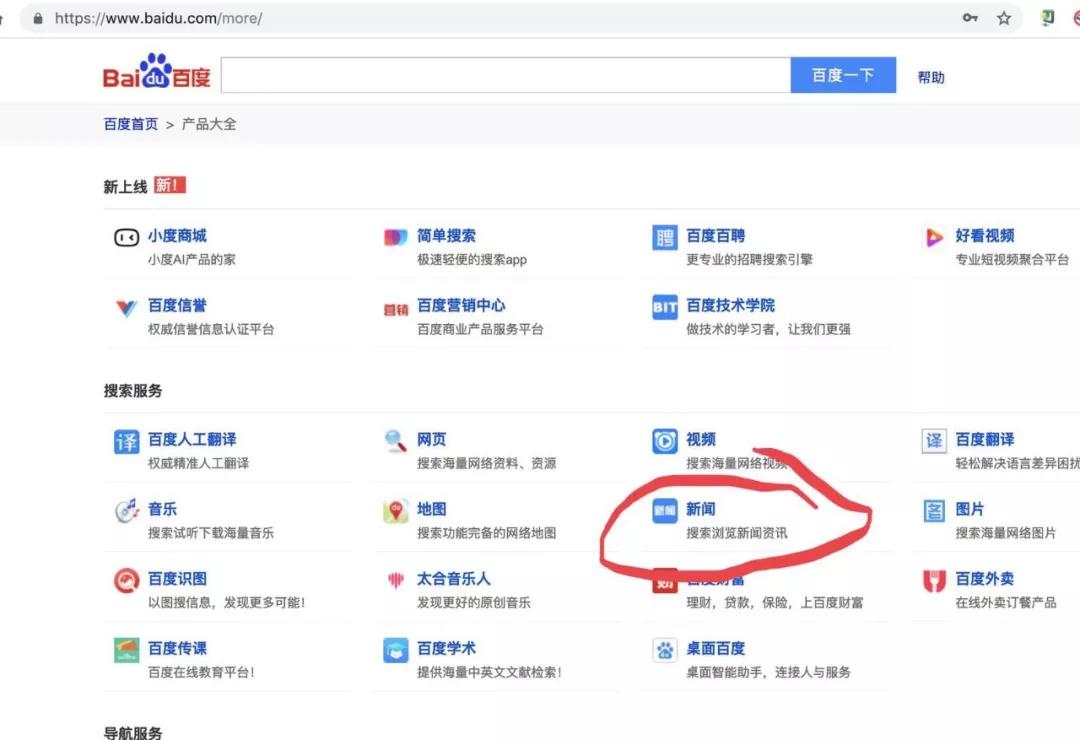 更让人郁闷的事情是:百度新闻在百度导航条中已然消失不见,替代为百度资讯。(百度新闻被隐藏到百度产品大全中,你需要从密密麻麻的产品里挑出百度新闻。这个产品不是没有了,而是严重弱化)