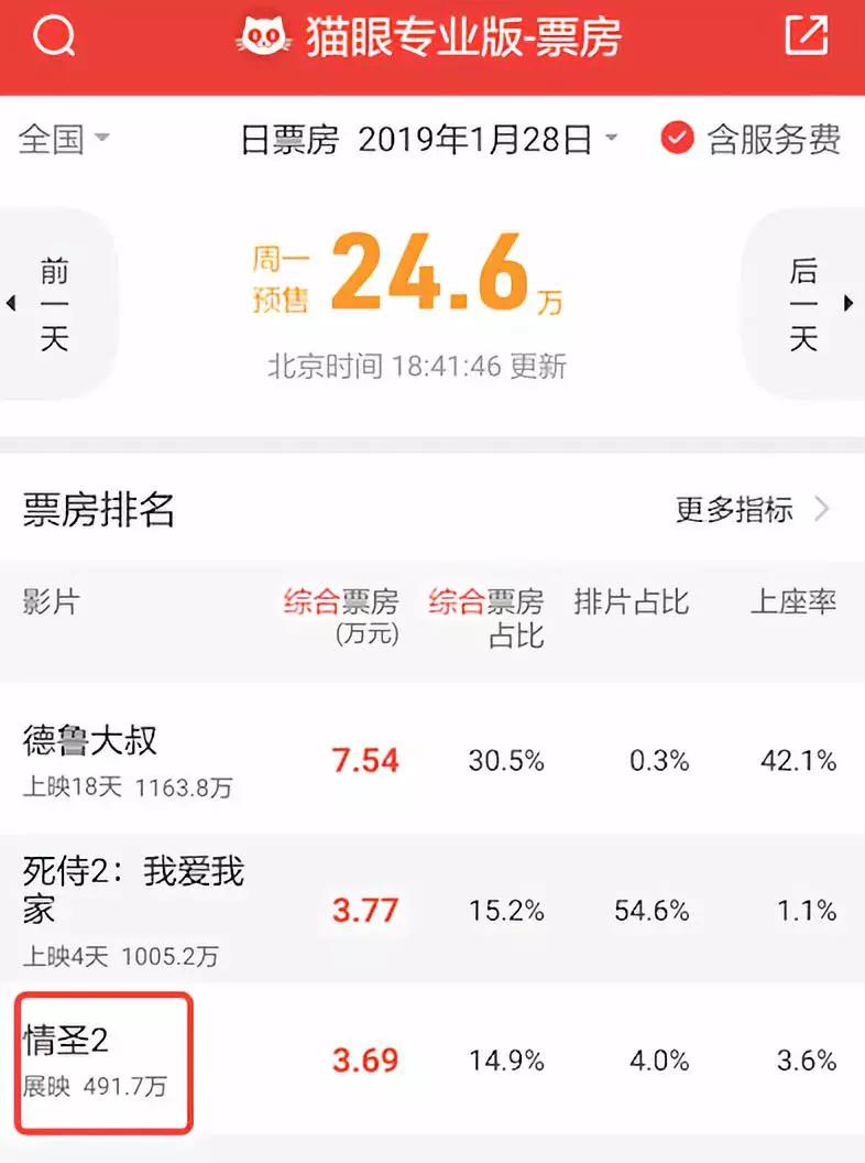 可市场是残酷的,观众是现实的。从21日到现在,《情圣2》的预售才不到500万元。