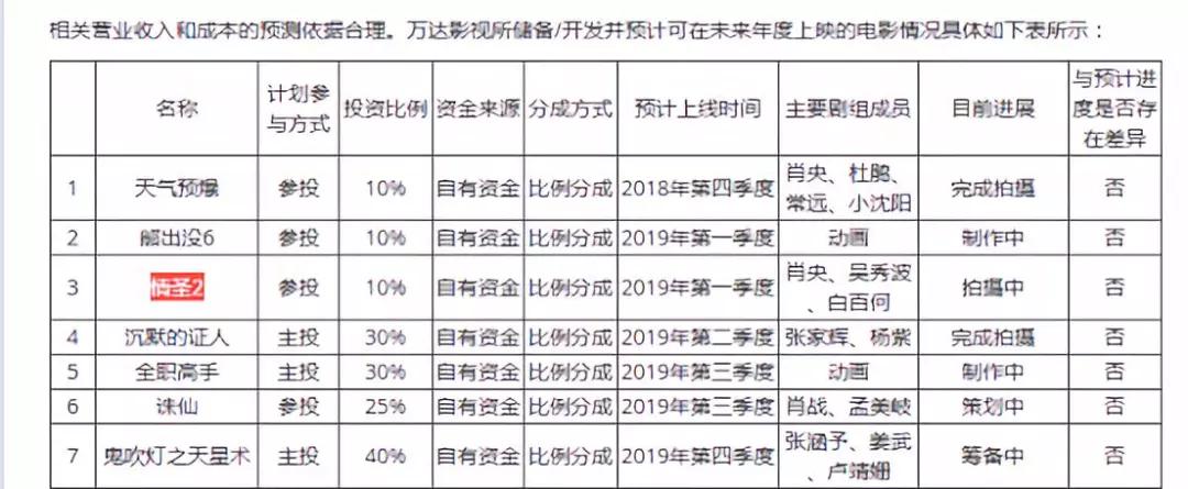 此外,《情圣2》的参投方还包万达影视。公司在去年11月发布的《发行股份购买资产及关联交易报告书》现实,万达影视对《情圣2》的参投比例为10%。