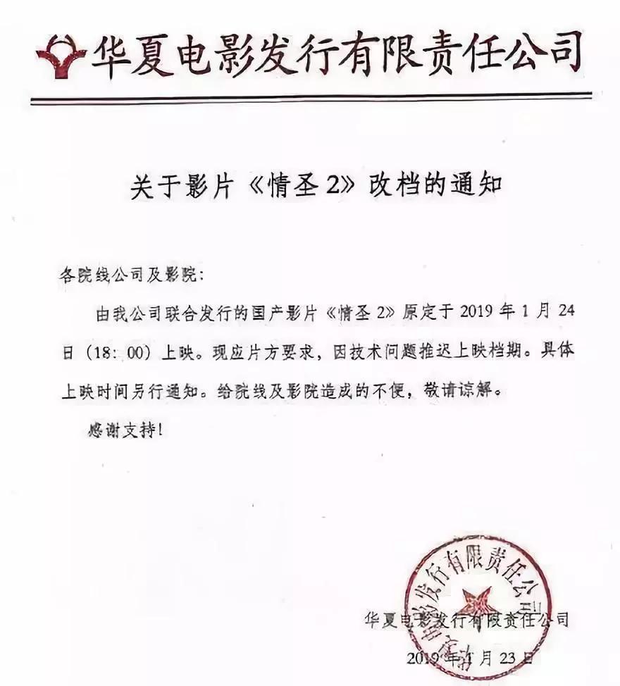 眼看离电影正式上映只有一天时间了,昨天(1月23日),电影《情圣2》官方又作出一个突然的决定:撤档!