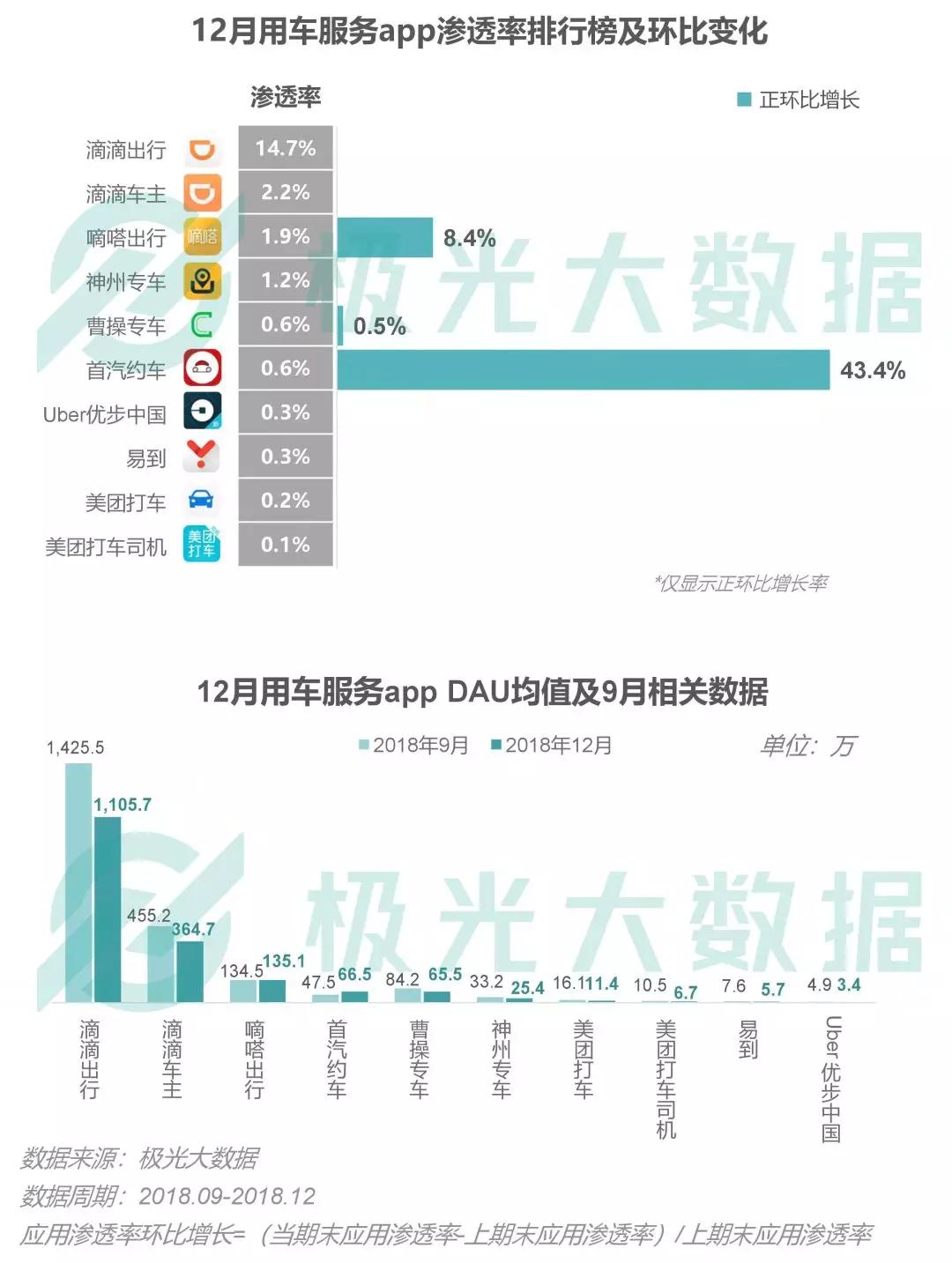 截至2018年12月,用车服务行业渗透率为18.5%,同比增长28.5%。或受近期网约车事件影响,12月DAU均值降至1578.1万