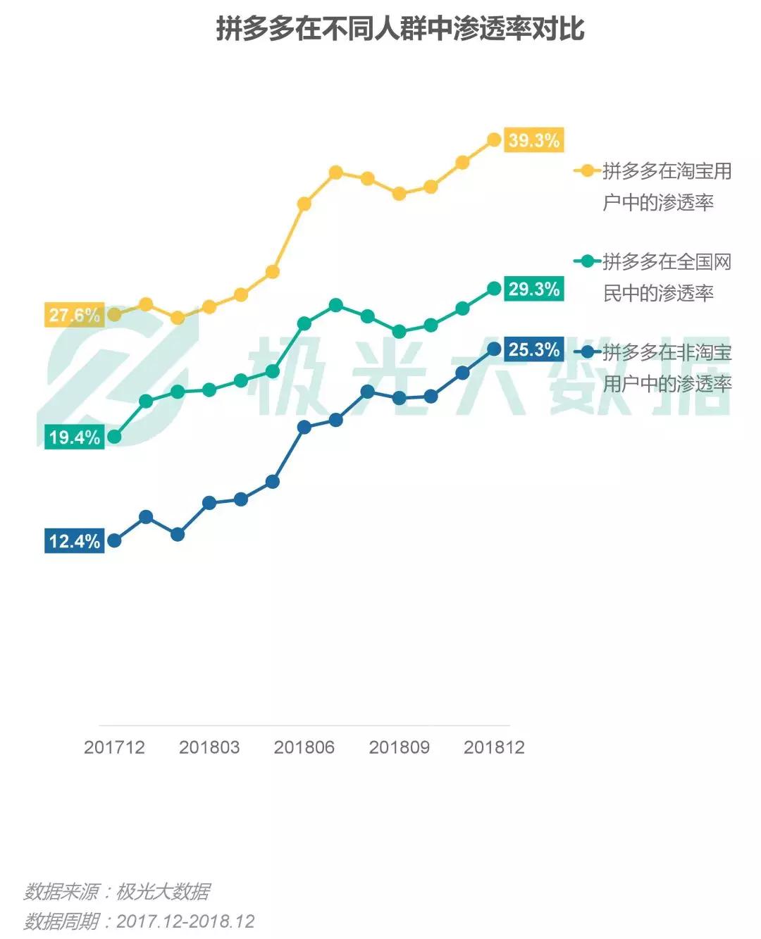 过去一年,拼多多在手机淘宝用户中的渗透率显著高于全体网民,表明拼多多对手机淘宝用户群的渗透效应较为明显