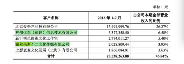 2016年1至7月,不二文化位列喜天前5大客户,销售额202万元左右,占喜天报告期营业额度的3.5%。