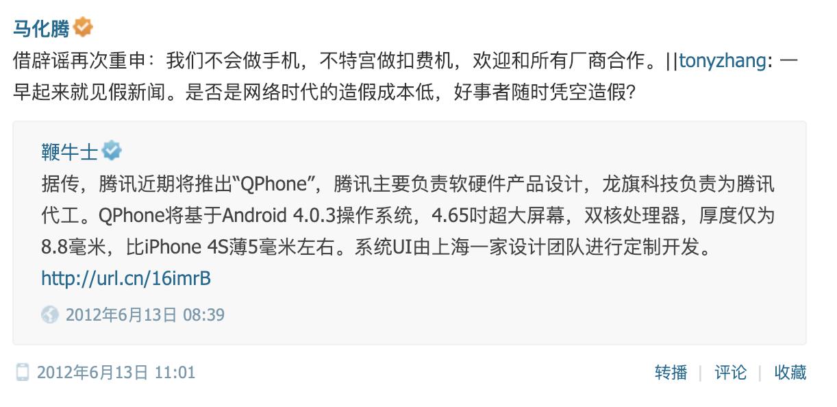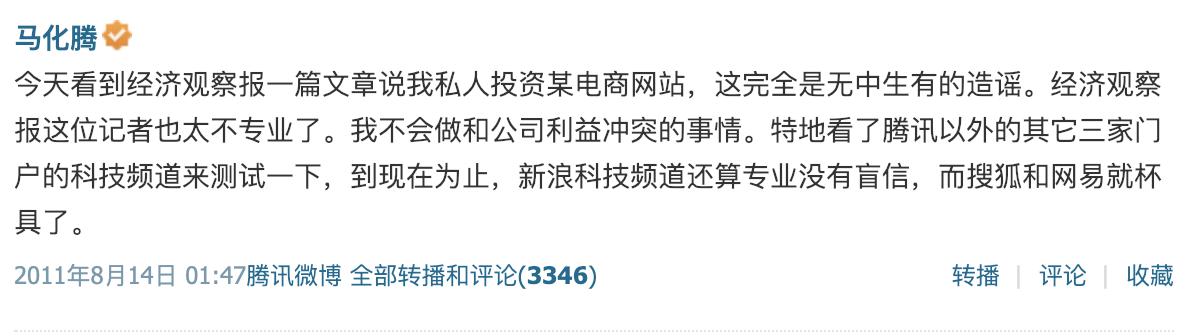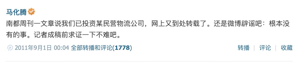 偶尔,他还就个人投资电商网站、物流公司、做不做手机的媒体报道,担起了“辟谣大V”的身份: