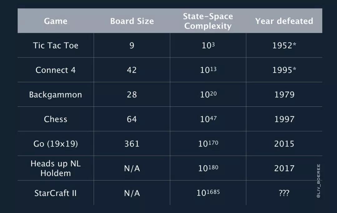 在围棋世界,动作空间只有361种,而星际2大约是1026。