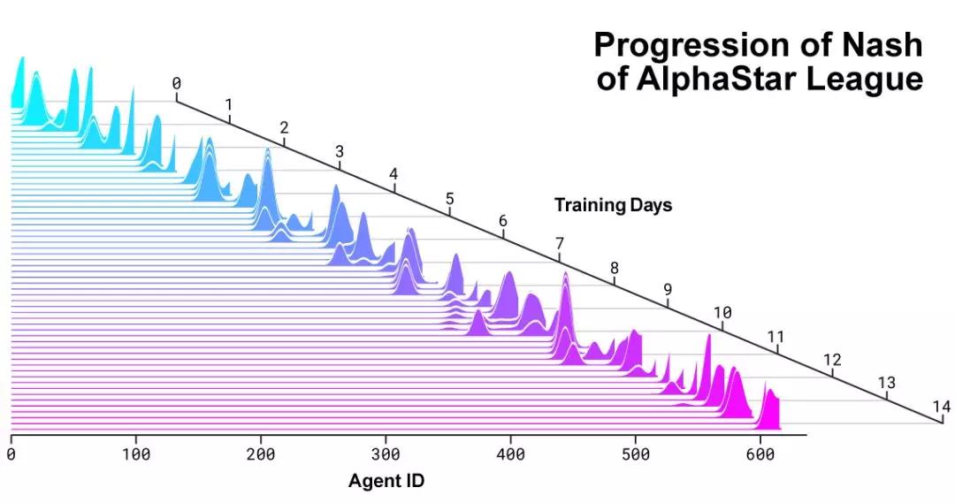 智能体联赛进行了14天,这相当于让每一个智能体都经历了连打200年游戏的训练时间。