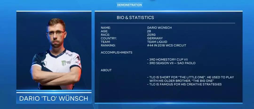 国内关于TLO的资料,不少都是几年前的对战,现在TLO应该已经在自己职业生涯的末期,可以算是一位久经沙场的老将。