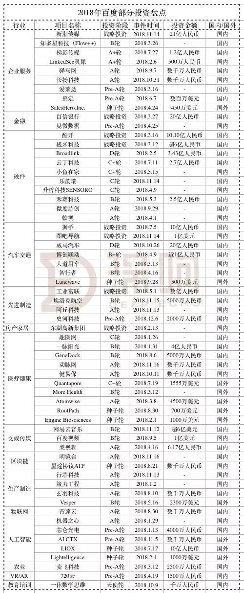数据扫描BAT投资2018:百度倾情AI,阿里重仓企服,腾讯坚守基本盘