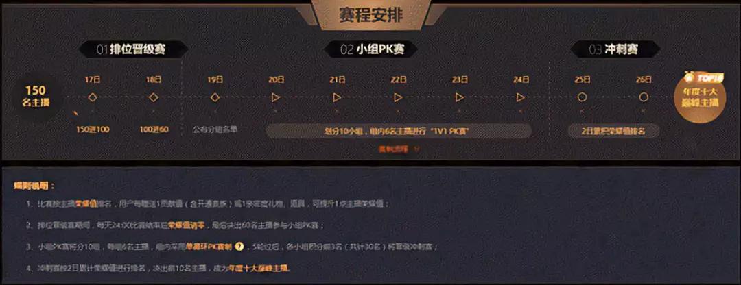 在鱼乐盛典活动中,我们能够看到诸多游戏中存在的元素:主播们分排位晋级赛、小组PK赛与冲刺赛三个阶段进行选拔。比赛按照主播荣耀值进行排名,用户赠送的贡献值与所刷礼物都会转换为主播荣耀值。最终荣耀值排名最高的10名主播将成为鱼乐盛典活动的十大主播。
