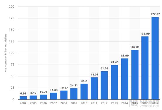 亚马逊2004-2017年营收数据