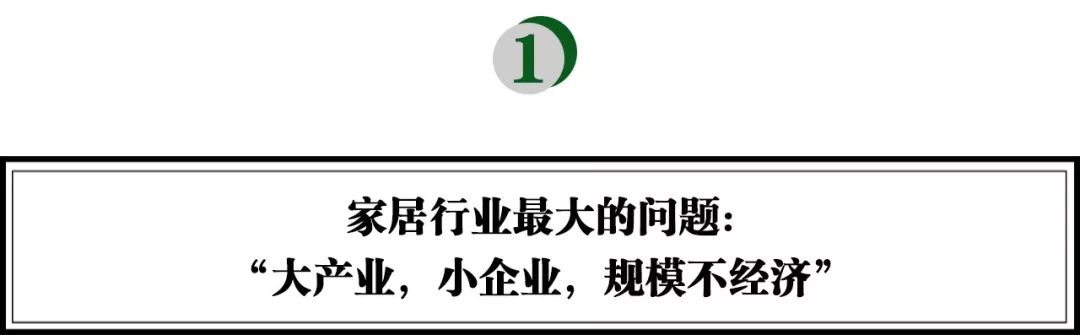 冷热参半,让我们看到,这个号称四万亿市场里隐藏的巨大挑战与机会。行业极度分散,以小微企业为主,产能不足,甚至无法抓住移动互联网红利。至今,相比于其他行业巨头的数千亿营收,百亿营收仍然是众多家居企业梦寐以求的目标。