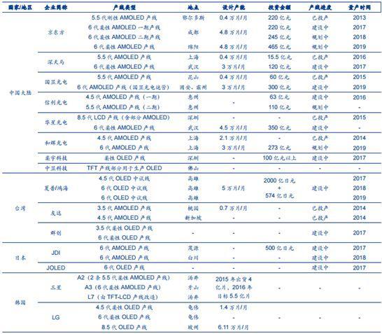 各OLED生产商的投入产出数据 信息来源于安信证券研究中心