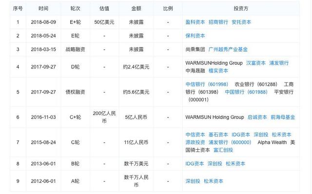 柔宇科技融资历程,图片来源于天眼查