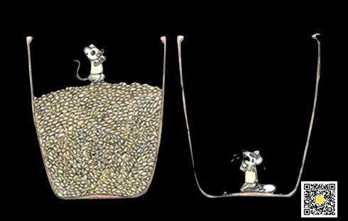 比如,有一个寓言故事是这么说的:老鼠每天跳到米缸里去偷吃米,吃完之后跳出来。它也不用去干活,很容易就得到一口饭吃,很轻松。后来有一天,它跳进去,发现跳不出来了,那高度太高了。它只能深陷在这个米缸里,吃在里边,拉在里边,so what?被活活饿死在里面,和那个米缸一起被倒掉了。