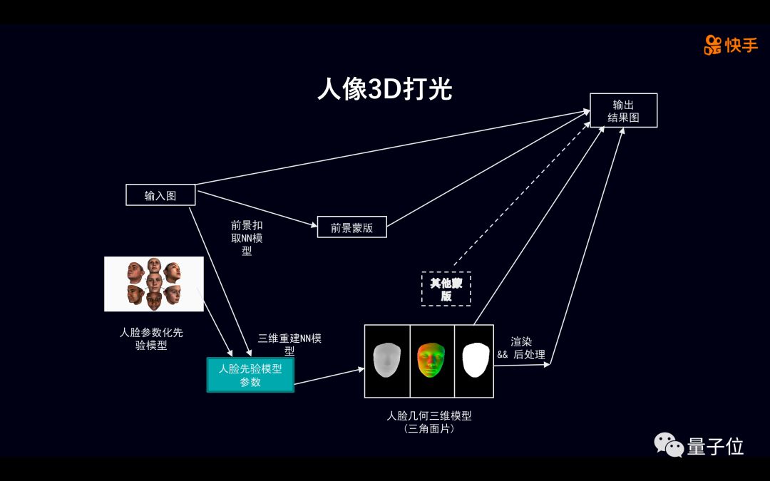 在这里,3D人脸重建需要借助快手内部的上万级3D人脸数据集,包含每个人的年龄段、人种、脸型和表情,通过人脸关键点识别技术,帮助3D人脸重建,不管你是哭着还是笑着都可以重现出来。