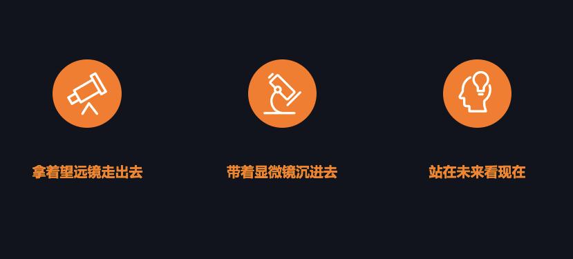 拿着望远镜走出去。做事之前,更多地看看全世界做得最好的企业做成什么样子,每一步都需要能够站在巨人的肩膀上,不要闭门造车。