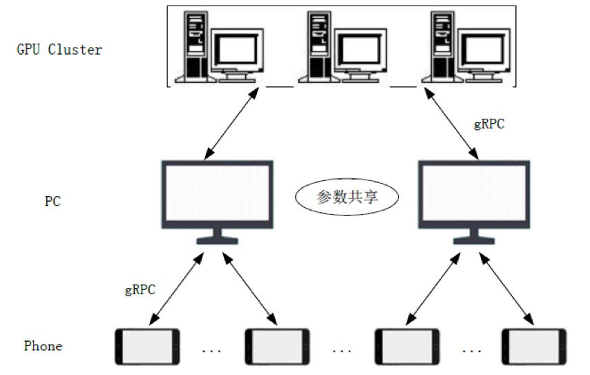 为了实现同时对多个英雄数据进行采集,并且提高整个《王者荣耀》人工智能模型的采样效率,样本多样性和训练速度,“vivo AI Lab”还搭建了一整个“分布式强化学习环境”:手机负责游戏的运行、动作执行和数据采集;电脑负责连接手机和服务器,进行强化学习算法选择、动作决策单元的运转;云端的GPU服务器集群负责整个神经网络的运行和存储。