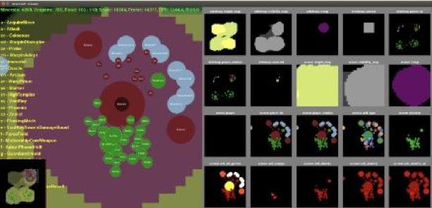 以游戏表现上最出色的DeepMind的“AlphaStar”为例,它并没有直接从图像中获取单位的信息,而是从游戏引擎里面读取特征信息,这些图像直接标记了哪里是兵或者工厂。