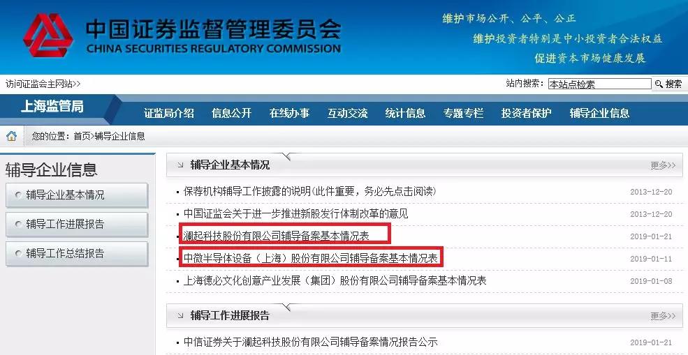 在证监会官网,锌刻度记者找到了几个值得关注的名字——上海监管局备案名单中的澜起科技、中微半导体,浙江监管局备案名单中的虹软科技。