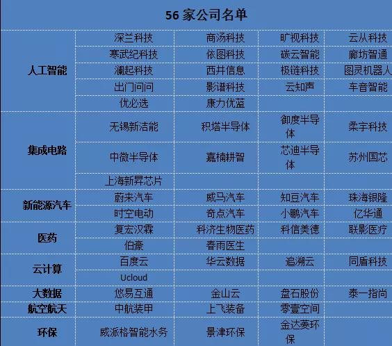 科创板第一批上市公司会有哪些公司呢?各种猜测络绎不绝,流传最广的是一张56家公司名单。