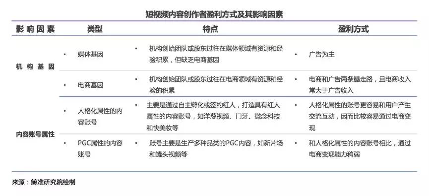 就短视频内容方变现模式来讲,目前以原生广告和电商收入为主,尚未形成to C端商业闭环,知识付费模式仍在尝试探索与完善。