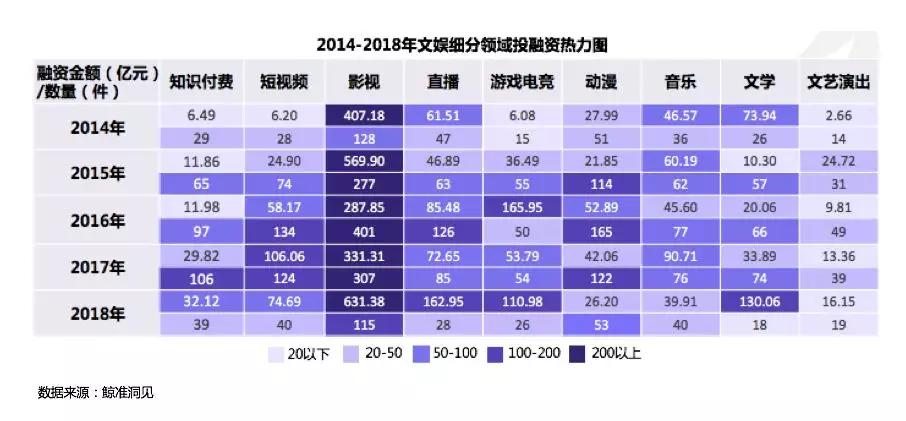 鲸准洞见显示,目前短视频领域相关创业公司共983家,纵观近五年文娱产业投融资情况,除去影视行业持续维持高关注度以外,短视频行业在2016-2017年得到更多机构的关注。2018年全年短视频行业融资总额约为494亿元。