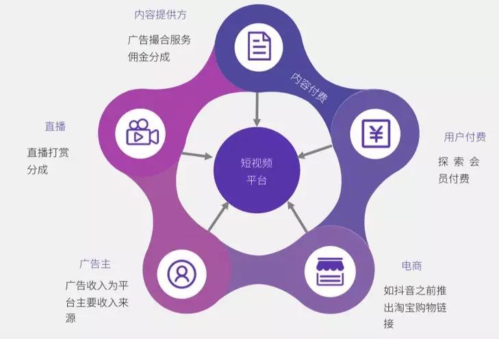 短视频平台方变现模式则较为多样,除了广告变现外,受益于短视频个性化算法以及碎片化消费的特点,电商的加入拓宽其盈利模式。电商与品牌纷纷探寻短视频营销入口,以实现品牌信息深度传达,广泛传播的目的。