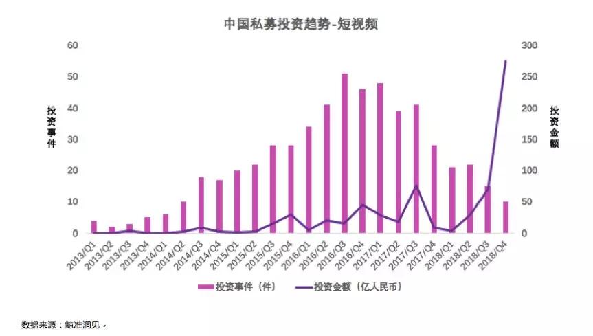 2017年,各平台纷纷推出MCN扶持计划,奖励短视频内容创作者,丰富其优质内容供应,各巨头也纷纷布局短视频。进入2018年,整体资本市场遇冷,短视频行业投资事件减少,但投资金额大幅增长,2018年Q4投资金额高达274亿元。