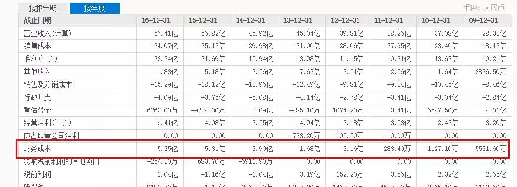 是什么造成了汇源果汁主业不振?或许从其财务报表中可以发现一些端倪。比如其负债率逐年增高,财务成本居高不下,2014年至2016年分别为2.9亿元、5.31亿元、5.35亿元,为其同期利润的数倍不止。