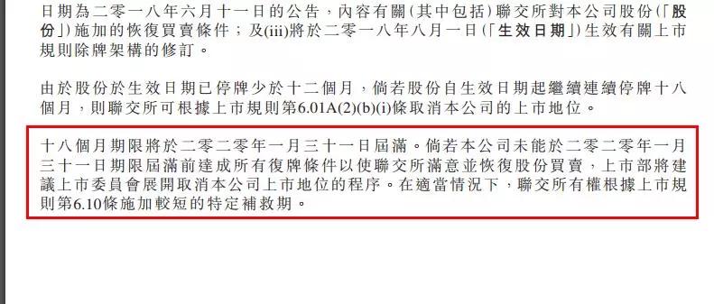 按照港交所要求,如果汇源果汁不能在2020年1月31日前完成复牌条件,那么港交所将启动对公司的退市程序。也就是说,现在留给汇源果汁还有一年时间。