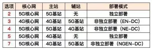 其他NSA还有诸如,核心网采用5G,4G基站和5G基站同时连接的7系解决方案;以及同样核心网采用5G,但以5G基站为主,4G基站为辅的4系解决方案。