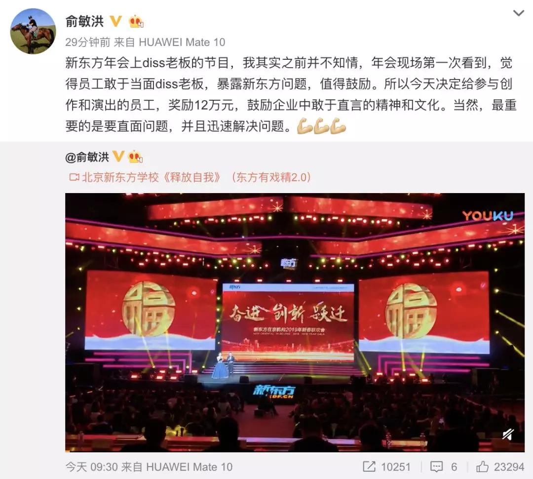 有赞CEO年会吐槽陷入巨大争议,新东方员工年会上借歌舞节目《释放自我》吐槽管理层却得到了一片叫好。