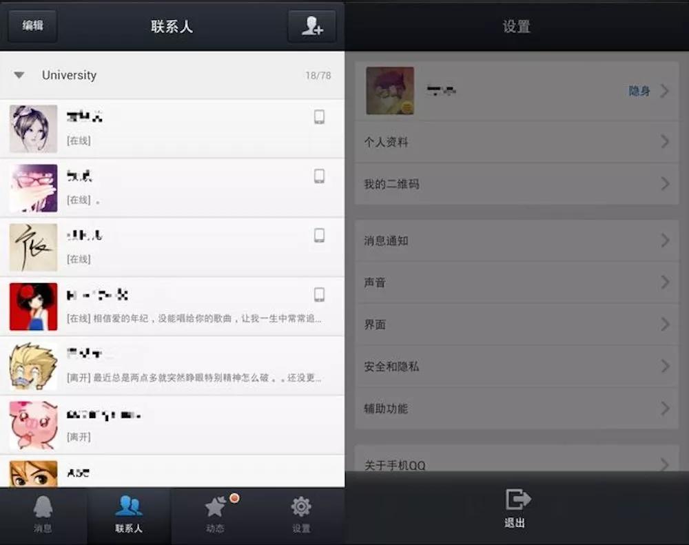 2013 年 5 月,QQ 手机版做了一次改版,将所有好友的头像都显示为在线状态,并取消了「在线」、「离线」的文字提示。