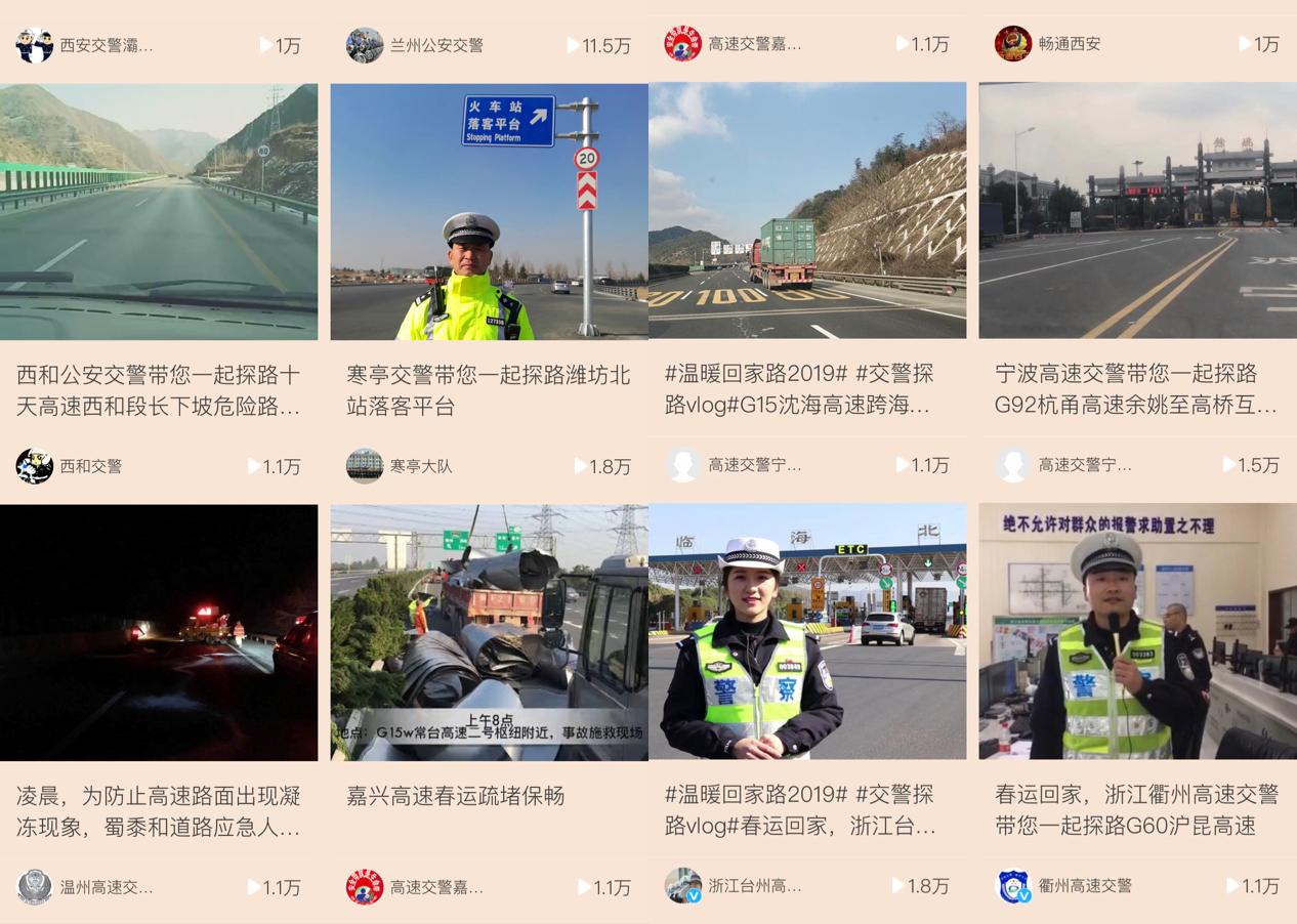 图为:秒拍“春运探路”活动中的交警探路vlog集锦