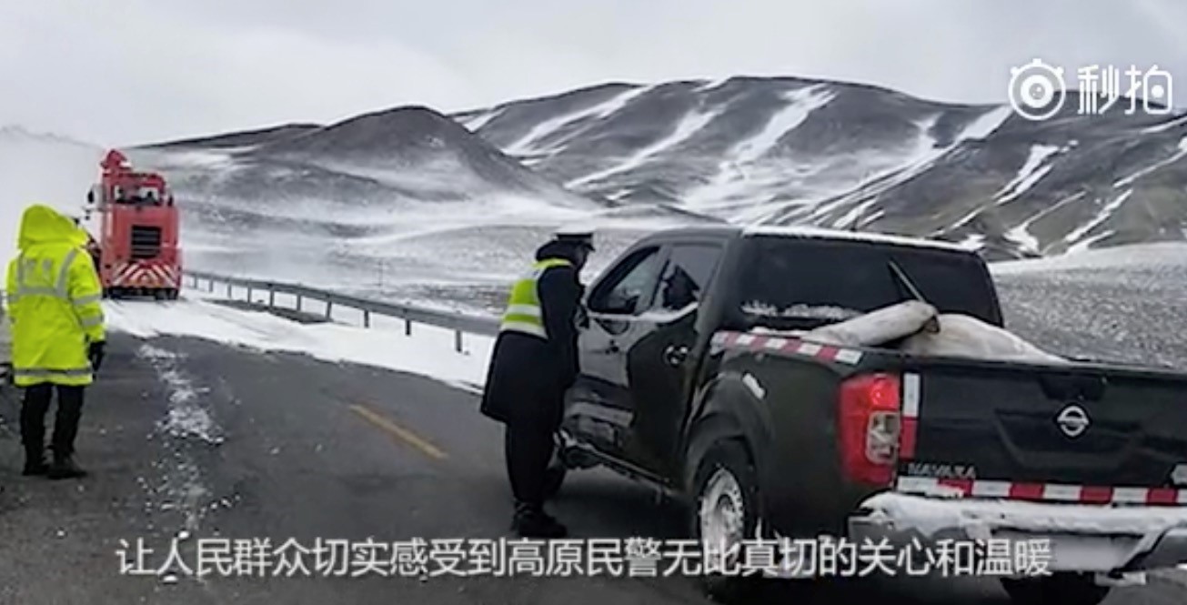 图为:西藏阿里普兰县交警在执行公务的现场