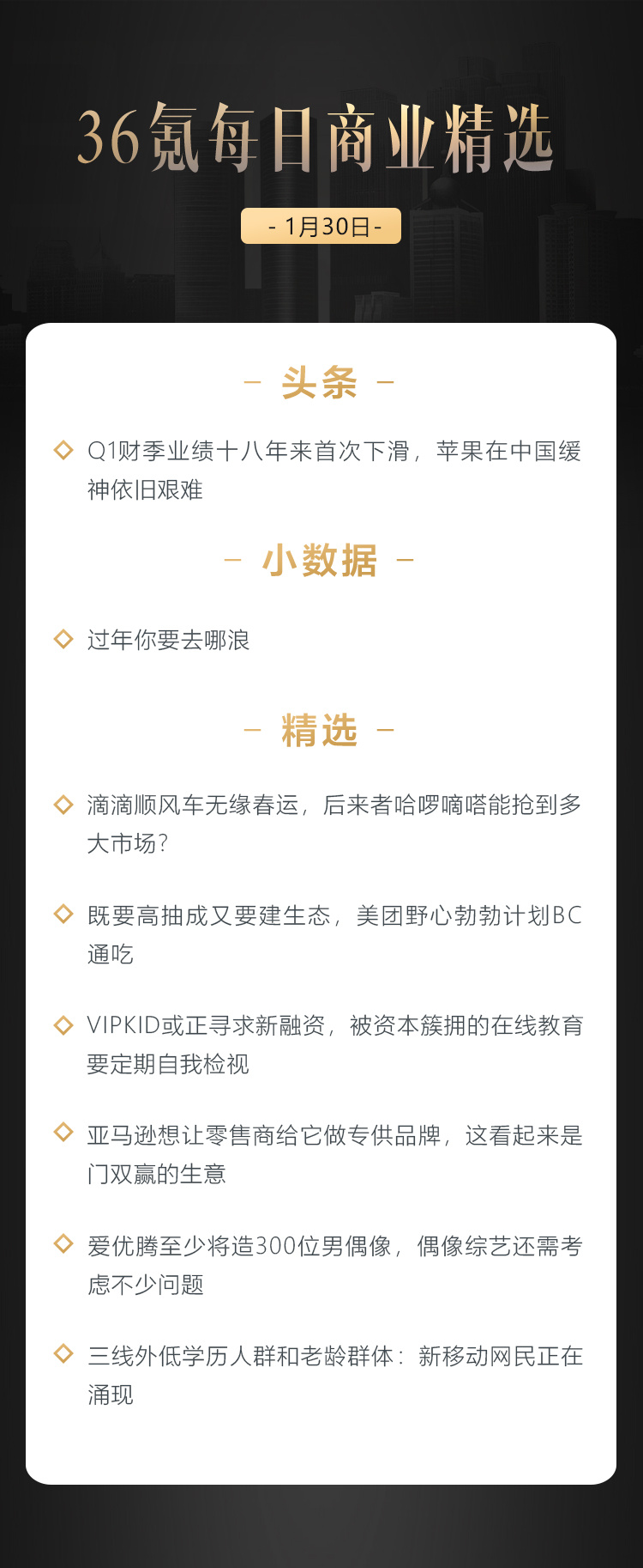 本文来自36氪付费栏目《36氪每日商业精选》——1月30日