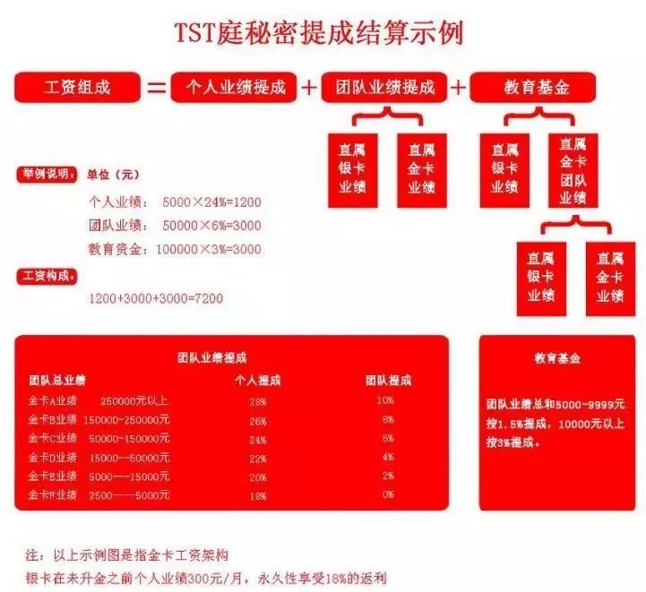 同时,和大多数直销体系相似,TST也有一套成熟的奖励机制,代理商级别越高,抽成越高。