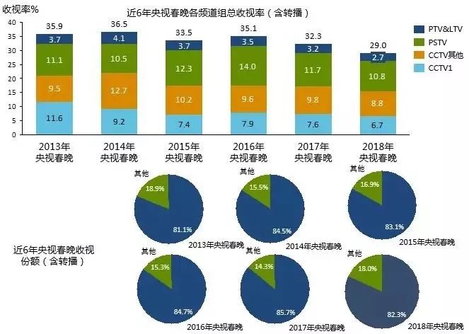 CSM52城收视率数据显示,央视春晚在2013年至2018年期间,整体收视率呈现出波动下滑的趋势。其中,在2018年,狗年春晚的收视率为29%,下降至30%以下。而且,即便一家人一起聚集在电视机前,也是有的抢红包、有的刷短视频、有的看吐槽,真正留给春晚的有效注意力并没有保障。