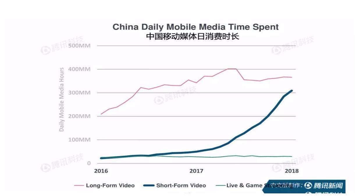 此外,《2018互联网女皇趋势报告》显示,中国短视频日消费时长正在迅速增长,且有要超过长视频的态势。