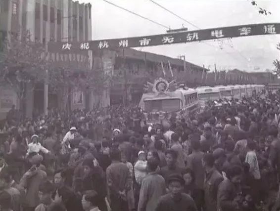 电车通车的庆祝典礼在杭州当时的国家剧院(现胜利剧院)举行。杭州城万人空巷,延安路上挤满了围观群众,连城外的菜农都跑来看热闹,不能到现场的都站在电线杆的大喇叭下收听,很多人眼里泛着泪光。