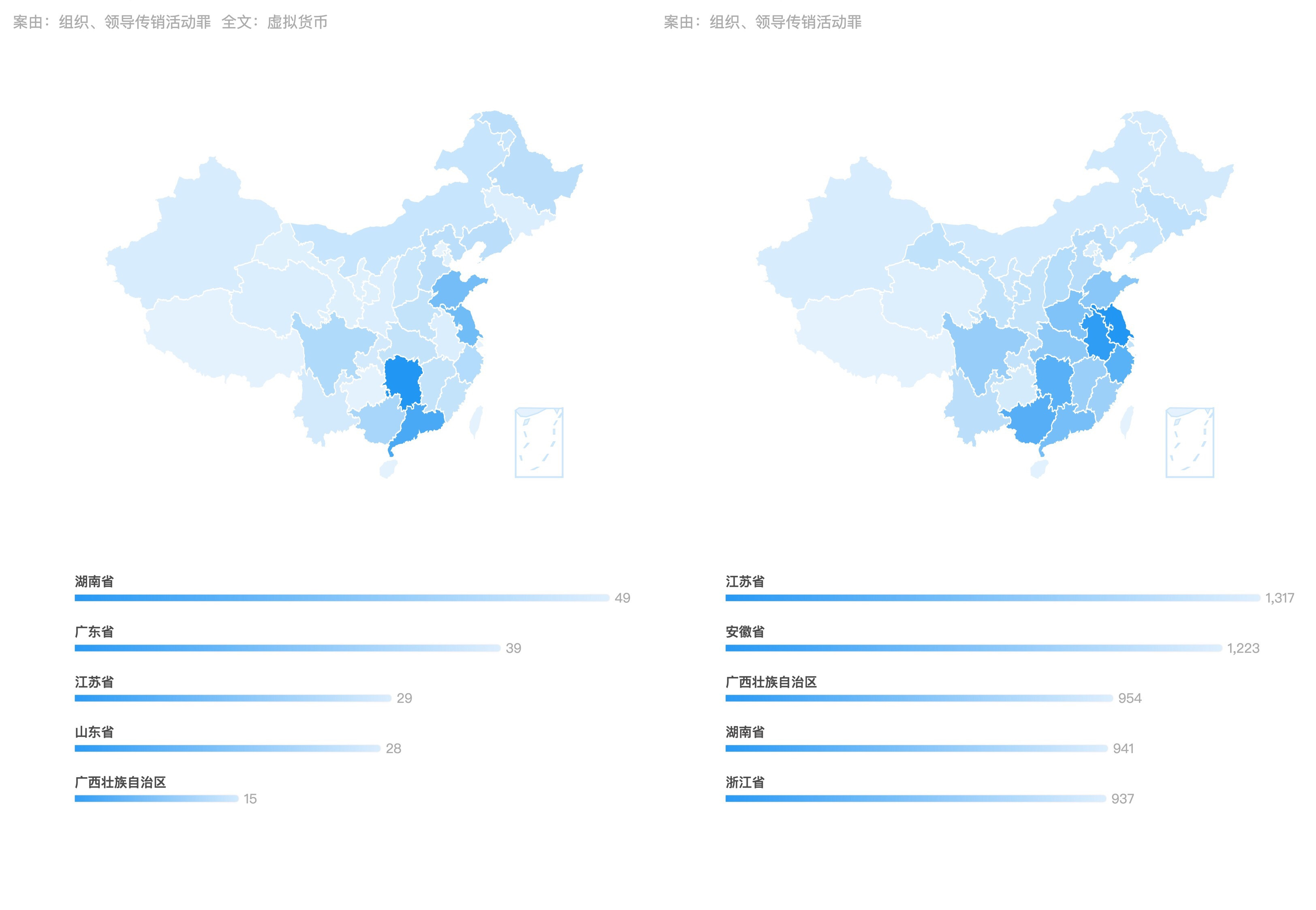 链法律师团队郭亚涛也有类似的梳理:“在地域分布上,涉案高发区域是两广地区、两湖地区、江浙地区。在这点上,跟传统的传销相似度很高。”